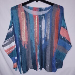 Tina Stephens Sweater Brush Metallic Batwing Knit One Size