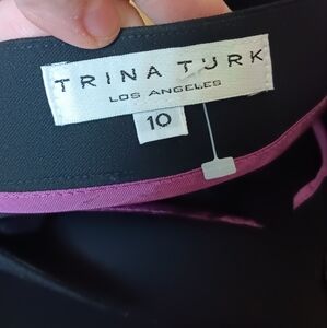 Tina Turk Black Mini Skirt Satin Stripes Down Sides Size 10 NWOT