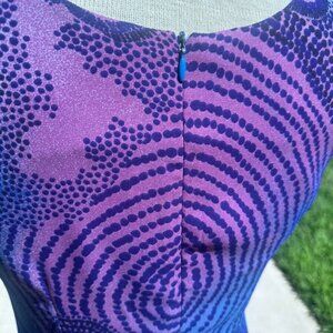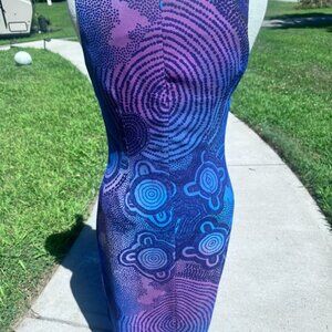 I'm 5'3 and it hits just above my ankles. 100% polyester. VGUC