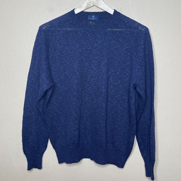 Tincati Milano Pullover Mens Large Blue Crew Neck Sweater linen Bland Casual