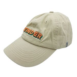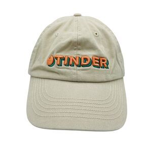 The Tinder Hat is a beige baseball cap designed for adult unisex wear. Made by Tinder Made, this one-size cap is a stylish accessory to add to your wardrobe. Perfect for casual outings or when you want to add a touch of personality to your look, this hat is a fun and fashionable choice for anyone looking to make a statement.