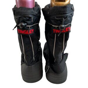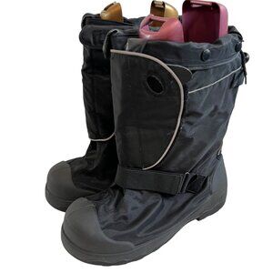 Tingley Winter-Tuff Orion XT Ice Traction Overshoe with Gaiter, black nylon, rollaway gaiter, hook & loop and buckle closure, large, fits men's size 8-9.5, preowned and shows general wear, no major flaws
