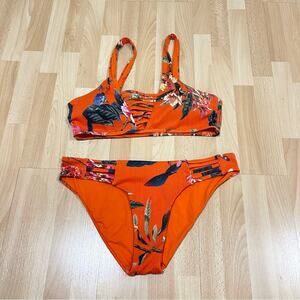 TiniBikin Orange Floral Bikini Two Piece Set Women’s Swimsuit size M