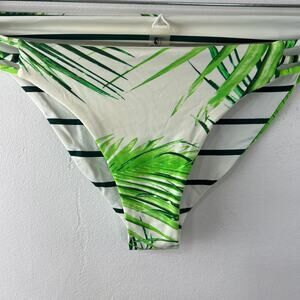 TiniBikini White Green Bra Underpants Nylon Stretch Tropical Print Size Medium M