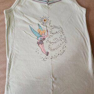This Disney Tinkerbell Gown in women's size medium is a charming and whimsical addition to any sleepwear collection. Made of 100% cotton with a graphic print design featuring the beloved character Tinkerbell, this sleeveless gown in a green color is both comfortable and stylish. The chemise style and regular fit make it a perfect choice for a relaxing night's sleep, while the Disney brand adds a touch of magic to the overall theme. Perfect for any fan of the Disney Princesses or those who simply love a good bedtime story.