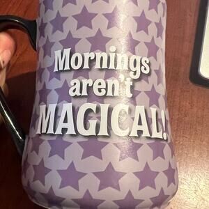 Tinker Bell "Mornings Aren't Magical" Purple Coffee Cup Mug DisneyLand Disney. Add a touch of Disney magic to your mornings with this adorable Tinker Bell coffee mug! Featuring the sassy quote "Mornings Aren't Magical," this purple mug is perfect for those who need a little extra motivation to get going. This mug is a delightful addition to any Disney collection or a fun gift for a Tinker Bell fan. Grab it now and make your coffee breaks more enchanting!