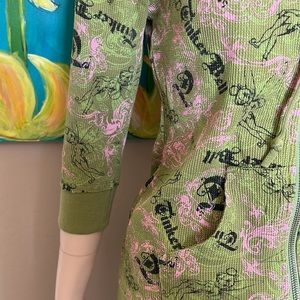 Tinker Bell print hoodie. 3/4 sleeves, zipper front. Drawstring hood. Lovingly worn by a slimmer me.