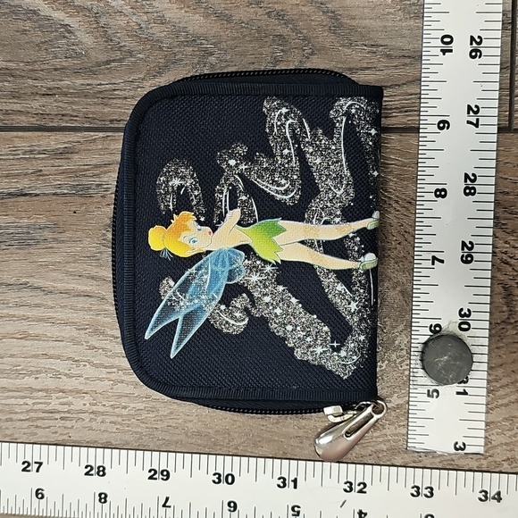 Charming dark navy coin purse featuring Tinkerbell design. Perfect for small essentials.
