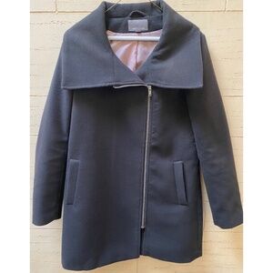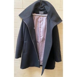 Funnel-neck box coat can be worn with the collar up or down to create two diferent looks.