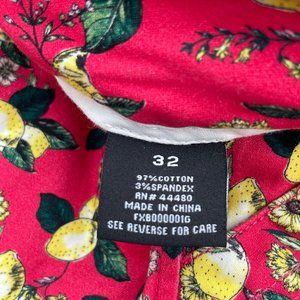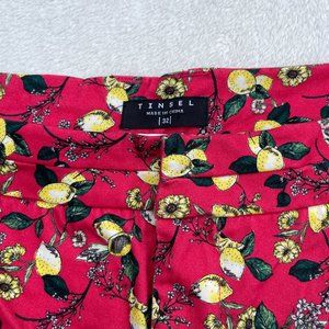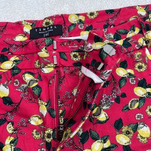 Tinsel Botanical Lemon Fruit Floral Print Shorts Womens Size 32 Red Pockets High Rise