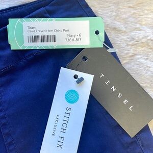 NWT•Tinsel, Casia, Frayed Hem, Chino Pant In Navy, Exclusively For Stitch Fix, Zipper with 2 Snap Closure, Belt Loops & 4 Pockets