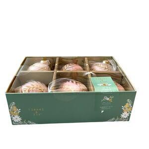 Tinsel & Fir Pink & Gold Glass Christmas Ornaments 3in Set of 6 Holiday Glam New