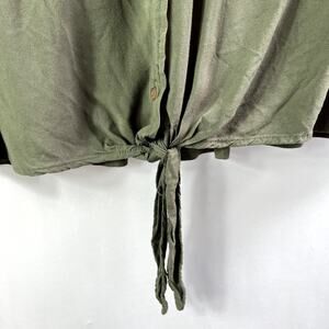Tinsel dark green short sleeved button down top with a tie at the waist, loose fit. Great preloved condition!