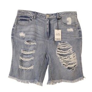 Tinsel Hi-Rise Distressed Bermuda Short 28 Denim Jeans Raw Edge Cut Off Blue B10