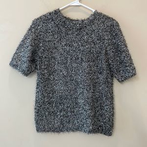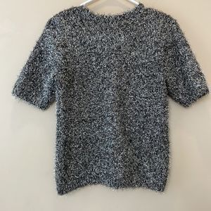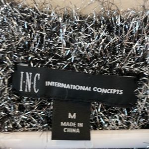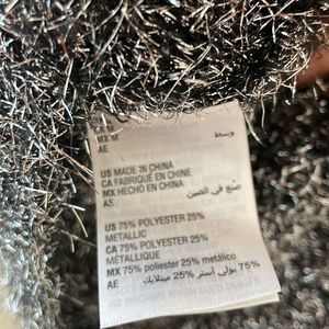 Medium metallic tinsel like top. Would be amazing for parties with black faux leather pants and booties. EUC ships quickly