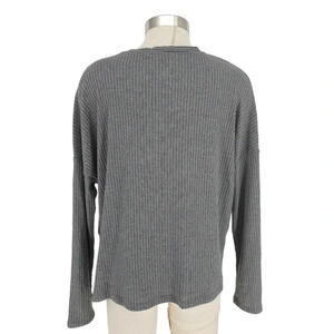 Tinsel Shirt Gray Long Sleeve Rib Knit Button Up V Neck Top Petite