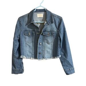TinselTown Women’s Small Denim Jean Crop Jacket Button Distressed Blue