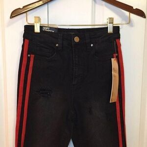 Tinseltown Black High Waist Red Stripe Cropped Raw Hem Jeans Size 25 New