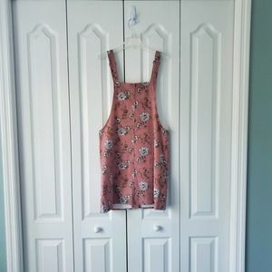 Tinseltown Dusty Rose Floral Print Vintage Style Button Front Overall Mini Dress