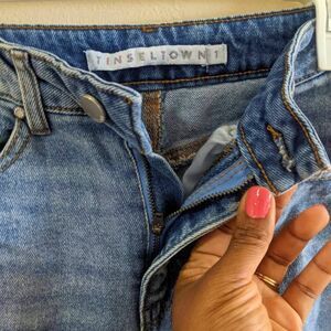 Tinseltown High Rise Distressed Mom Jeans Women’s Size 1 Medium Wash Y2K Grunge Denim