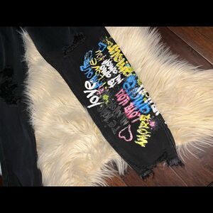 Tinseltown Hi rise The Mom Jean graffiti raw hem sz 11