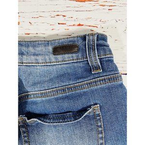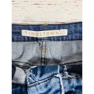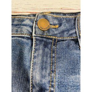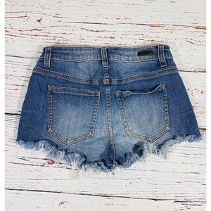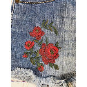 Tinseltown Jean Shorts Juniors Sz 3/4 Blue Cutoff Raw Hem Embroidered Red Flower