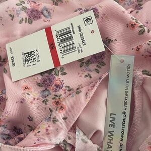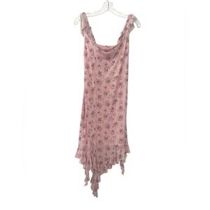 Tinseltown Mesh Ruffle Cold Shoulder Midi Dress Cloud Pink Juniors XS Cowl Neck