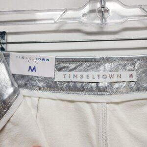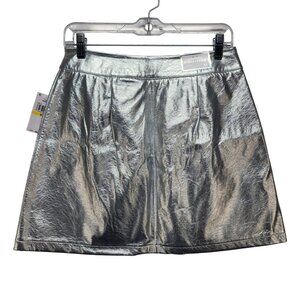 Tinseltown Metallic Silver Mini Skirt With Back Pockets Full Zip Closure Size M