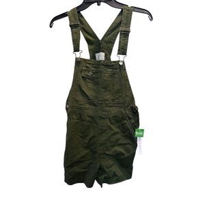 Keywords: Tinseltown, women's overalls, green overalls, cotton overalls, adjustable straps, bib pocket, side pockets, casual wear, machine washable, size small, new with tags.