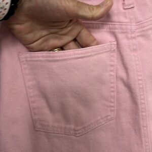 Tinseltown pink denim miniskirt with front slits on each leg, Size 7