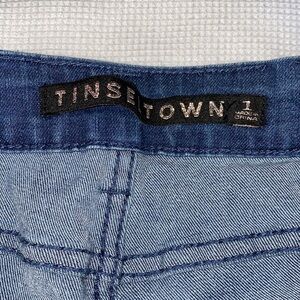 Tinseltown woman’s rise embroidered skinny jeans size 1. Gently used. Distressed on the knee area.