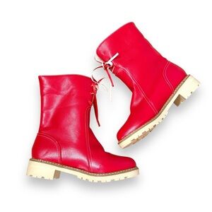 Designed with both function and fashion in mind, these boots are perfect for braving chilly days and snowy adventures. The bold red and cream color combination adds a pop of vibrancy to your cold-weather wardrobe, effortlessly complementing jeans, leggings, or even cozy winter dresses.