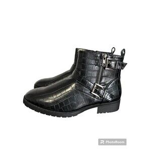 Brand New, Tinstree Women's Round Toe Low Heel Slouchy Bootie Side Zipper & Buckle Strap 9