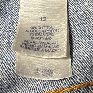 perfect BoHo style with large turned up cuff, copper stud on pockets and legs. Small amount of stretch with distressed denim. Very good condition, some added wear on right front pocket and some scratches on metal studs.