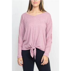Tint + Shadow Pink Boat Neck Tie Front Floral Lace Long Sleeve Knit Top Sz S