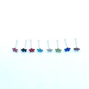Tiny 4mm Color Flower Cubic Zirconia Silver Nose Pin Nose Ring Nose Stud Nose