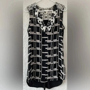 Tiny Anthropologie Black/White Lace Embroidered Chaparral Tunic Tank Top; size S