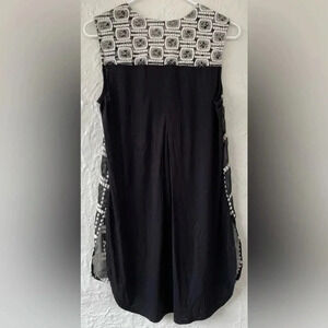 Tiny Anthropologie Black/White Lace Embroidered Chaparral Tunic Style Tank Top With High/Low Hem; size S