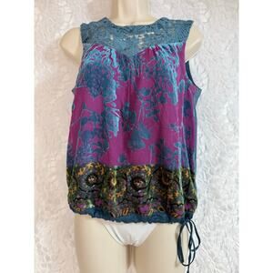 Tiny Anthropologie Blue Lace Purple Velvet Burnout Tank Top Boho Hippie Magic XS