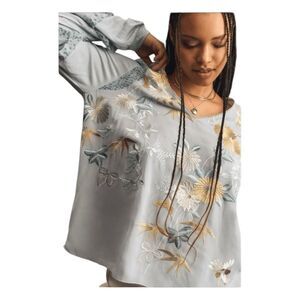 Tiny Anthropologie Frances Blouse Blue Floral Embroidered Long Sleeve Ruffled S