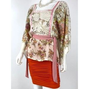 Tiny Anthropologie Side Tie Top Begonia Floral Blouse Square Neck Lace Kimono M
