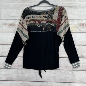 Tiny Anthropologie Tie Front Paisley Back Print Blouse Womens Small Black