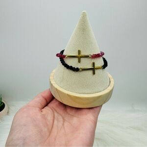 Tiny Beads Boho Stainless Steel Cross Charm Bracelet Set