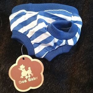 Bought it for my shitzu but it's too small for him. Tag says Small but it's more like an XSmall. Adjustable string for the waist. Tail hole in the back. New with tag.