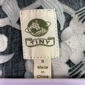 Size small. Metallic trim on the collarbone area. Powder blue and lavender floral print. Boxy fit.