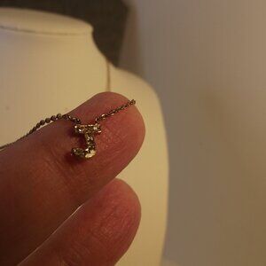 19 inches total length. Delicate and tiny "J" with rhinestones on it - very pretty and dainty