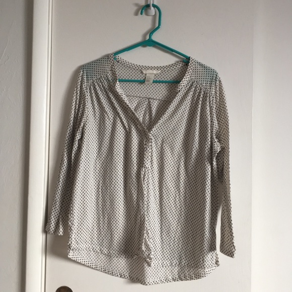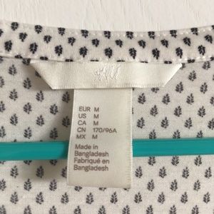 This super soft, white and black top from H&M is perfect for both work and for running errands while looking adorable! The leaf pattern is unique and fun, and the shirt is lightweight and breathable. Buttons on the front. US size Women’s Medium. No rips, stains, or snags. No tags, worn very few times.