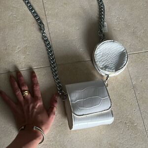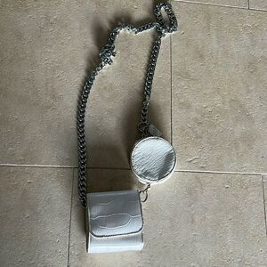 Tiny Light Blue Leather Crossbody Purse - 2 Small Attachments - NEW - Circle Zipper Pouch and Mini Bag w Silver Hardware