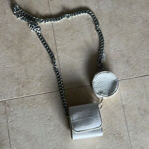 Tiny Light Blue Leather Crossbody Purse - 2 Small Attachments - NEW
