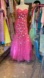 She is clearly ready to have fun .. a pink tulled and mermaid skirt gown with giant sequins slightly randomly distributed thru out… some are holgramed, some are iridescent